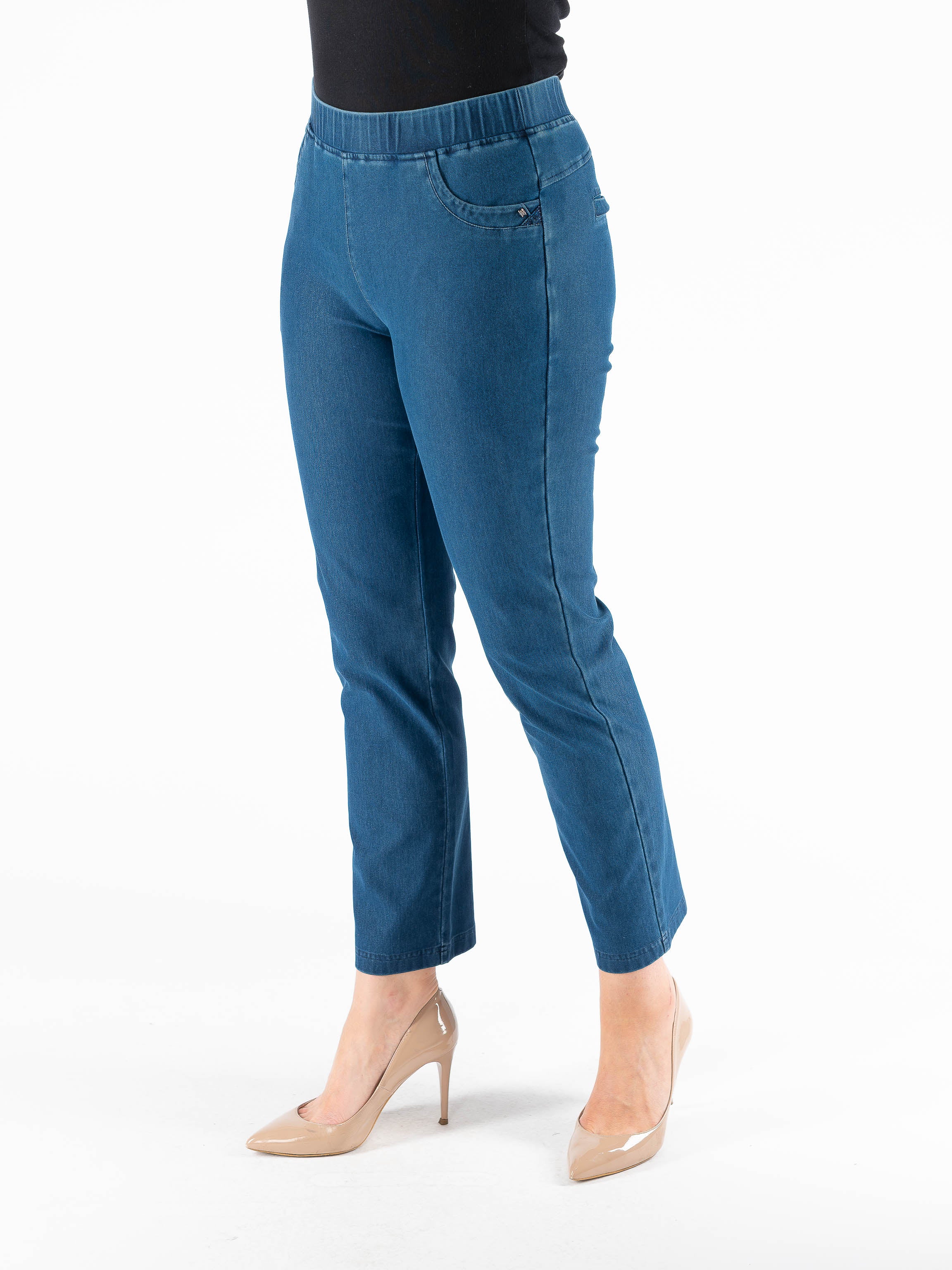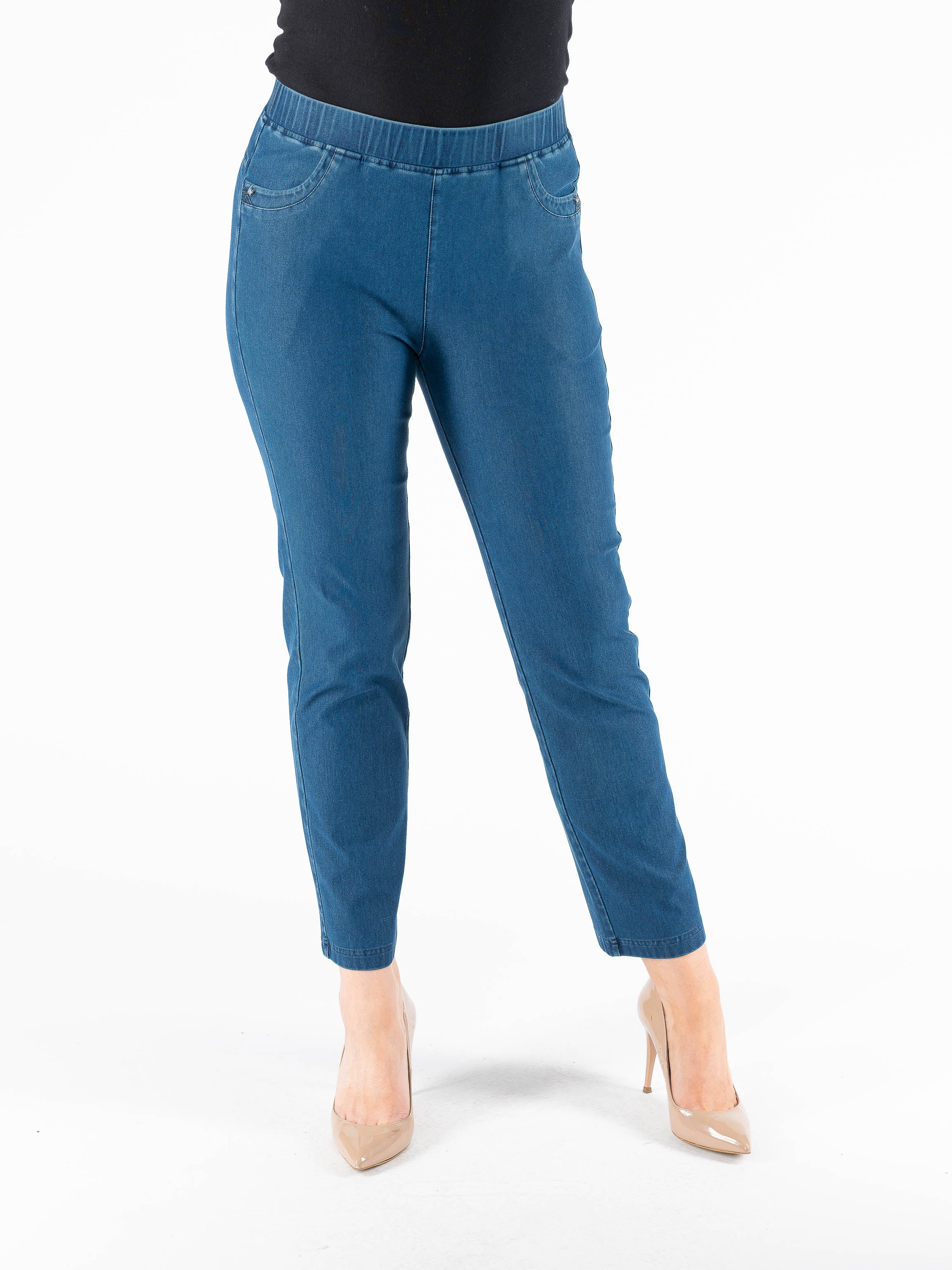 T30257 27 INCH LEG DENIM TROUSER METAL TRIM POC MID BLUE