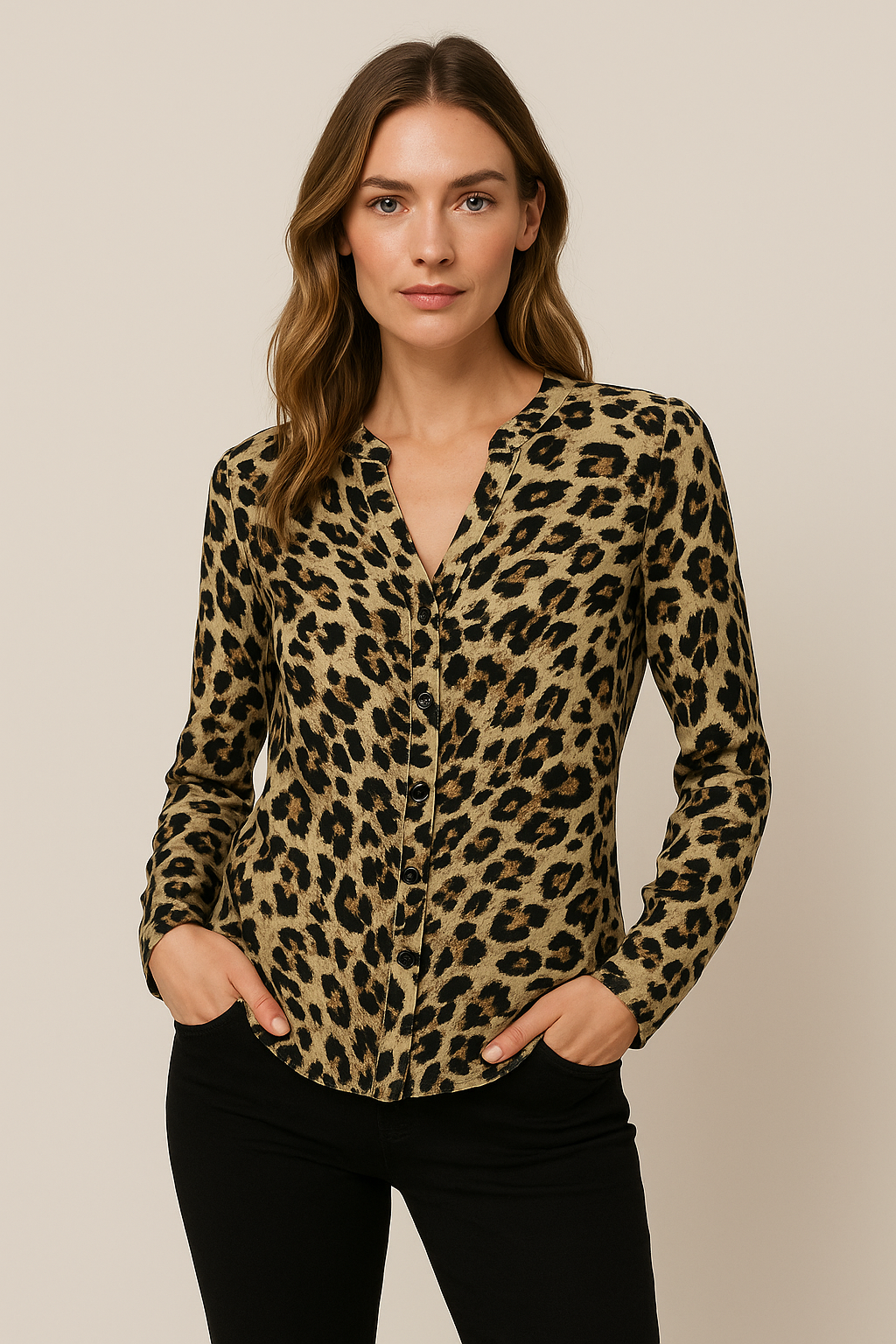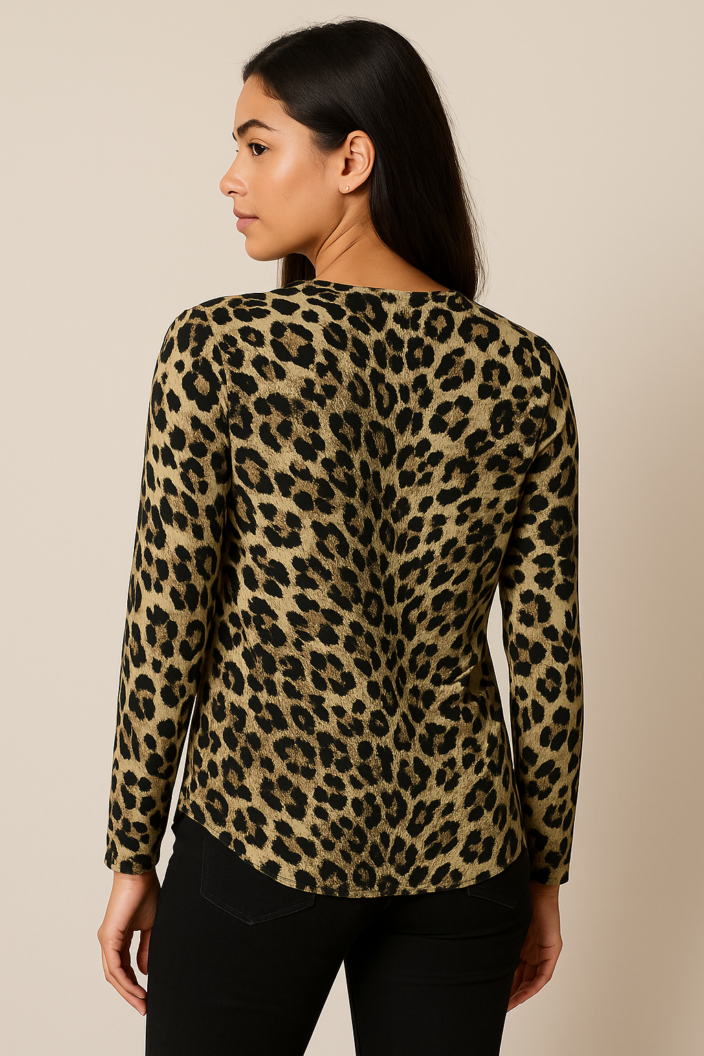 TO30394 Animal Print Glittered Top With 3/4 Slev BEIGE BLACK