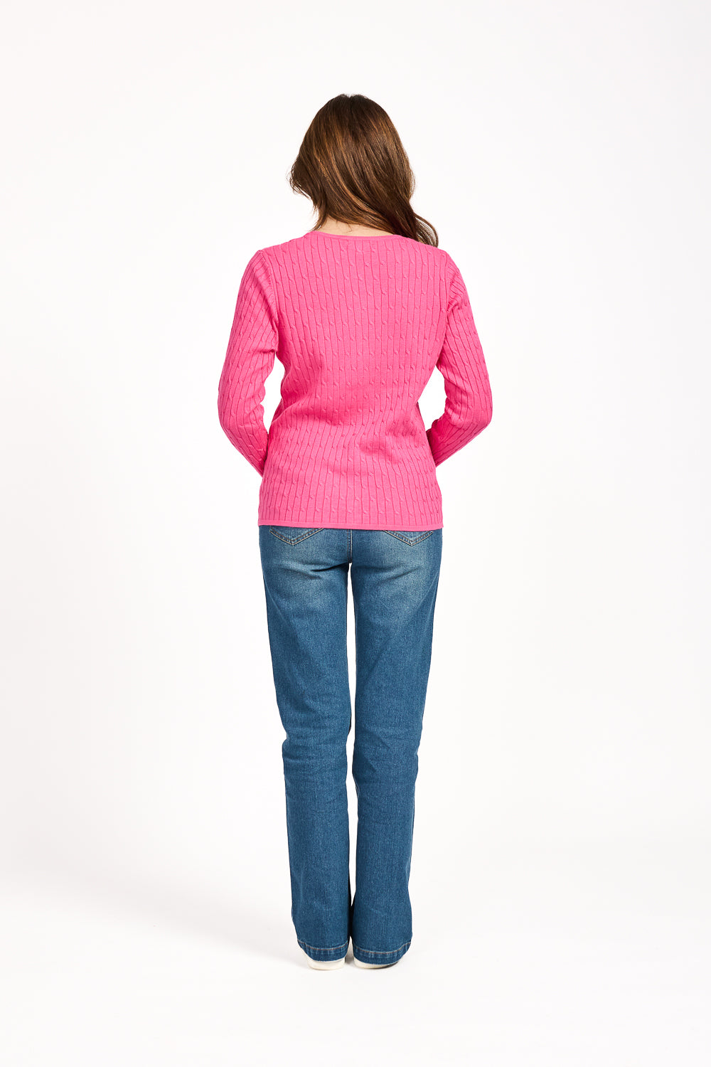 Brighten your everyday wardrobe with this All Over Cable Button Cardigan in a vibrant pink shade. The classic cable knit texture adds timeless appeal, while the soft knit fabric makes it comfortable and easy to wear throughout the day.