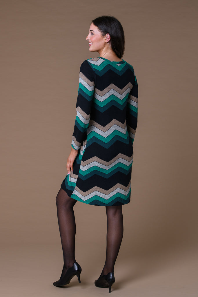 Zig Zag Button Dress- Green