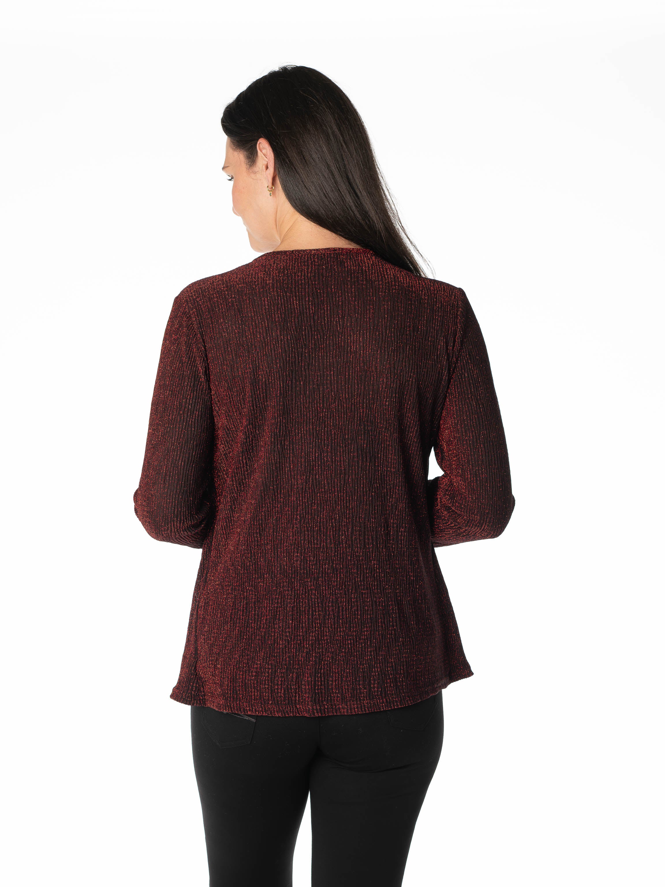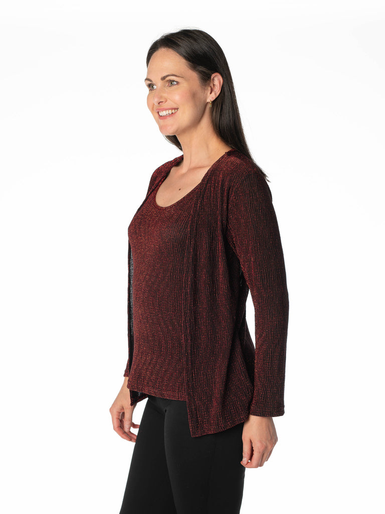 CA30373 ROUND NECK GLITTERED FULL SLEEVE CARDIGA BLACK RED
