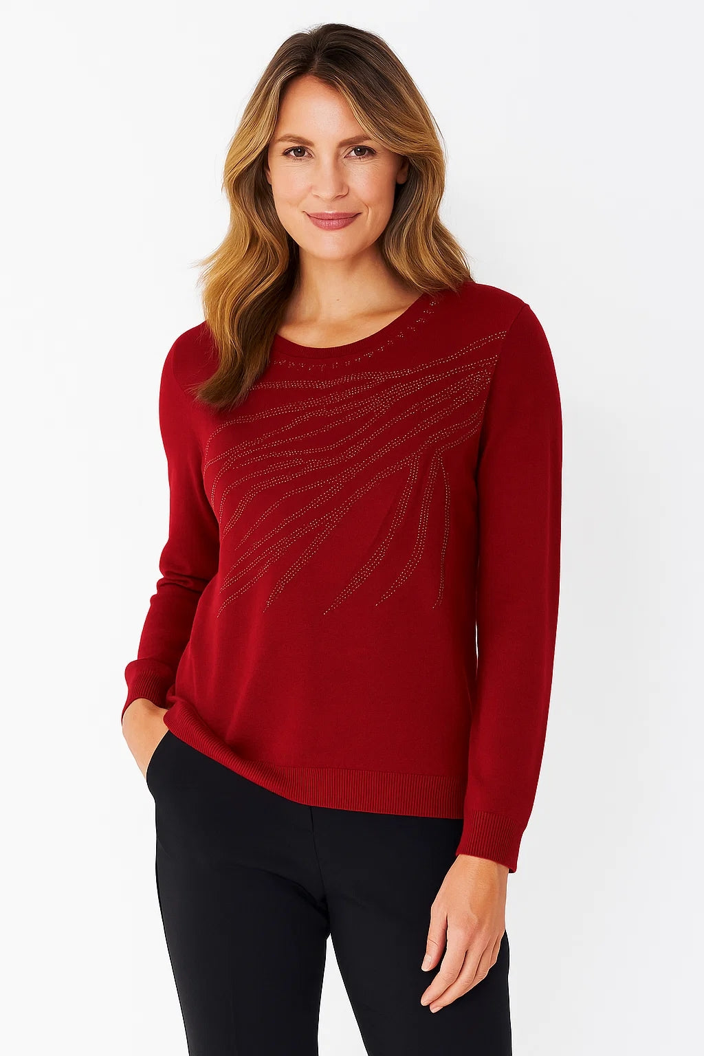 JU30337 FITTED GLITTER ROUND NECK LONG SLEEVE JU WINE