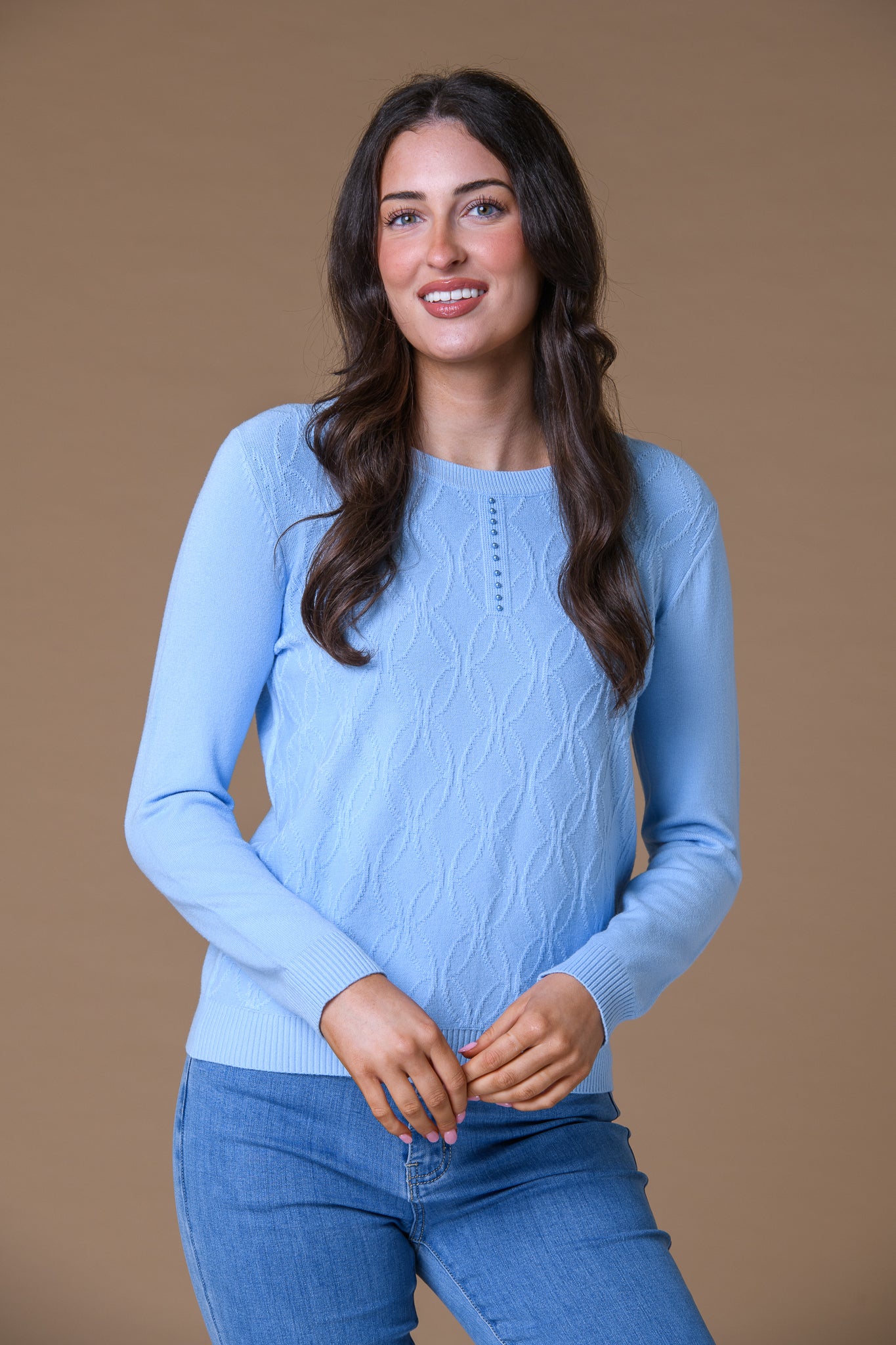 Elevate your everyday wardrobe with the timeless charm of our Pearl Placket Sweater. This beautifully soft knit features a refined pearl-trimmed placket that adds a touch of sophistication to a classic silhouette. Designed with a smooth, cosy finish, it offers effortless comfort while bringing a little extra sparkle to your seasonal looks.