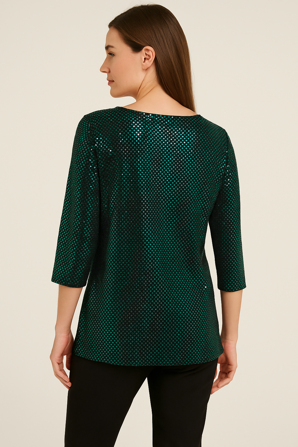 TU30408 SPARKLE SEQUINS PRINT TUNIC WITH 3/4 SLE TEAL