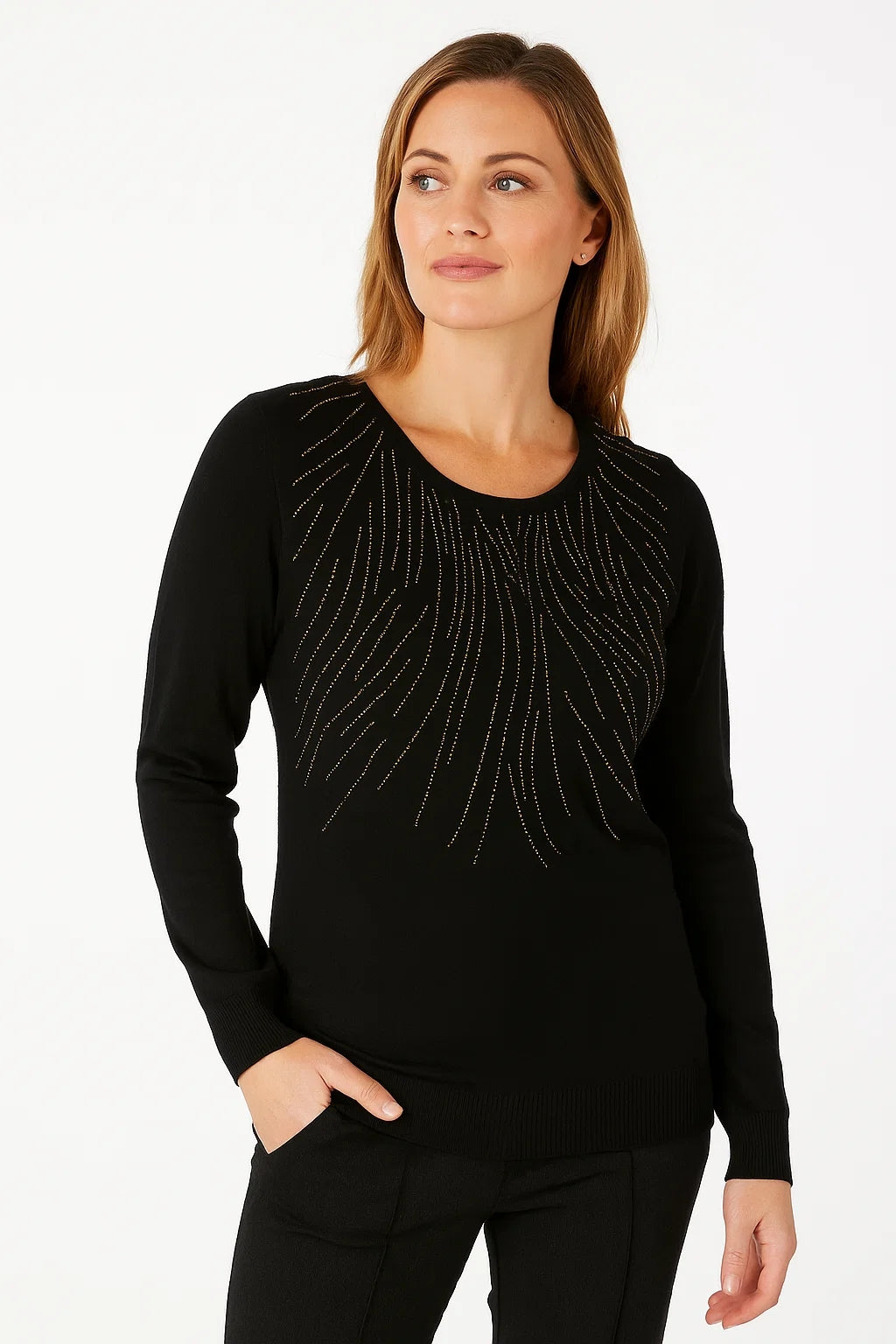 JU30332 DIAMANTE EMBELLSIHED ROUND NECK JUMPER BLACK