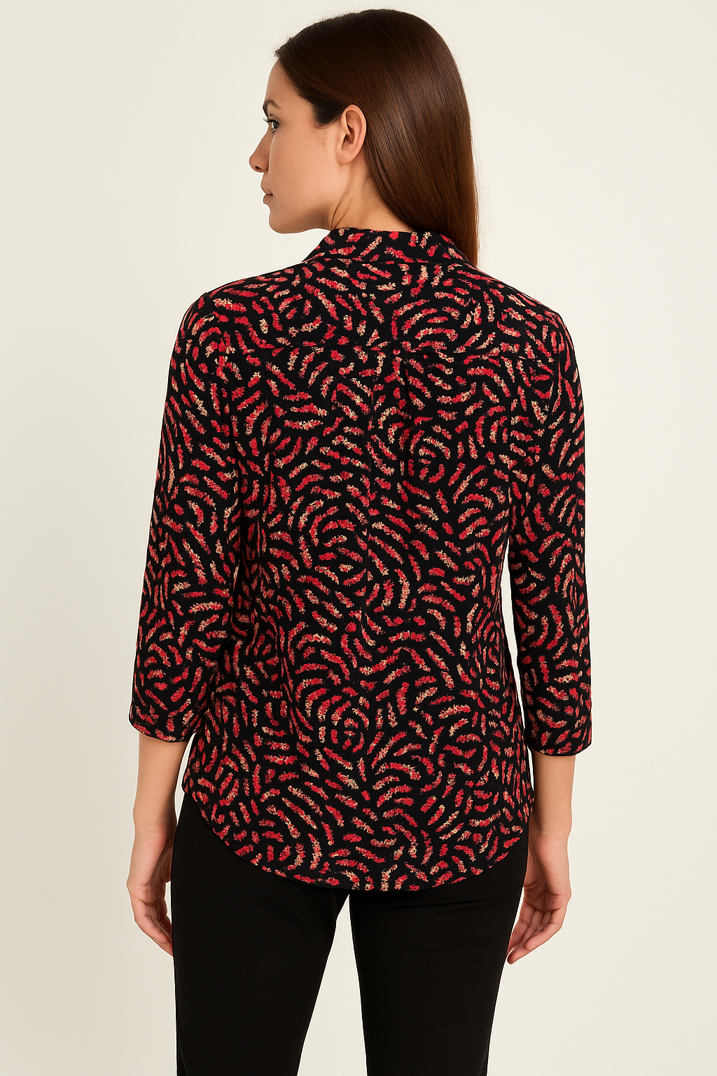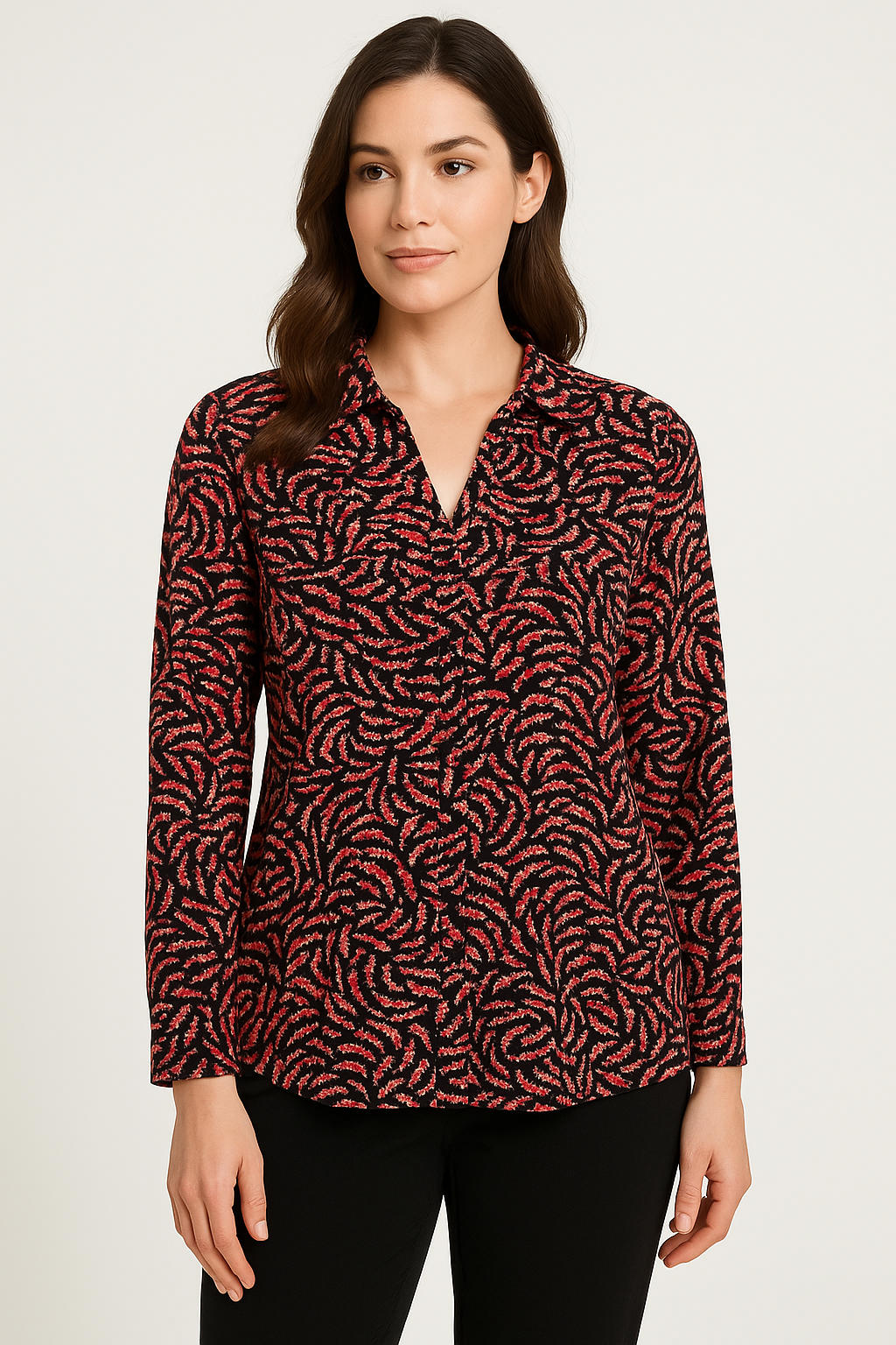 TO30422 RED PRINT TOP WITH BUTTON PLACKET 3/4 SL RED PRINT
