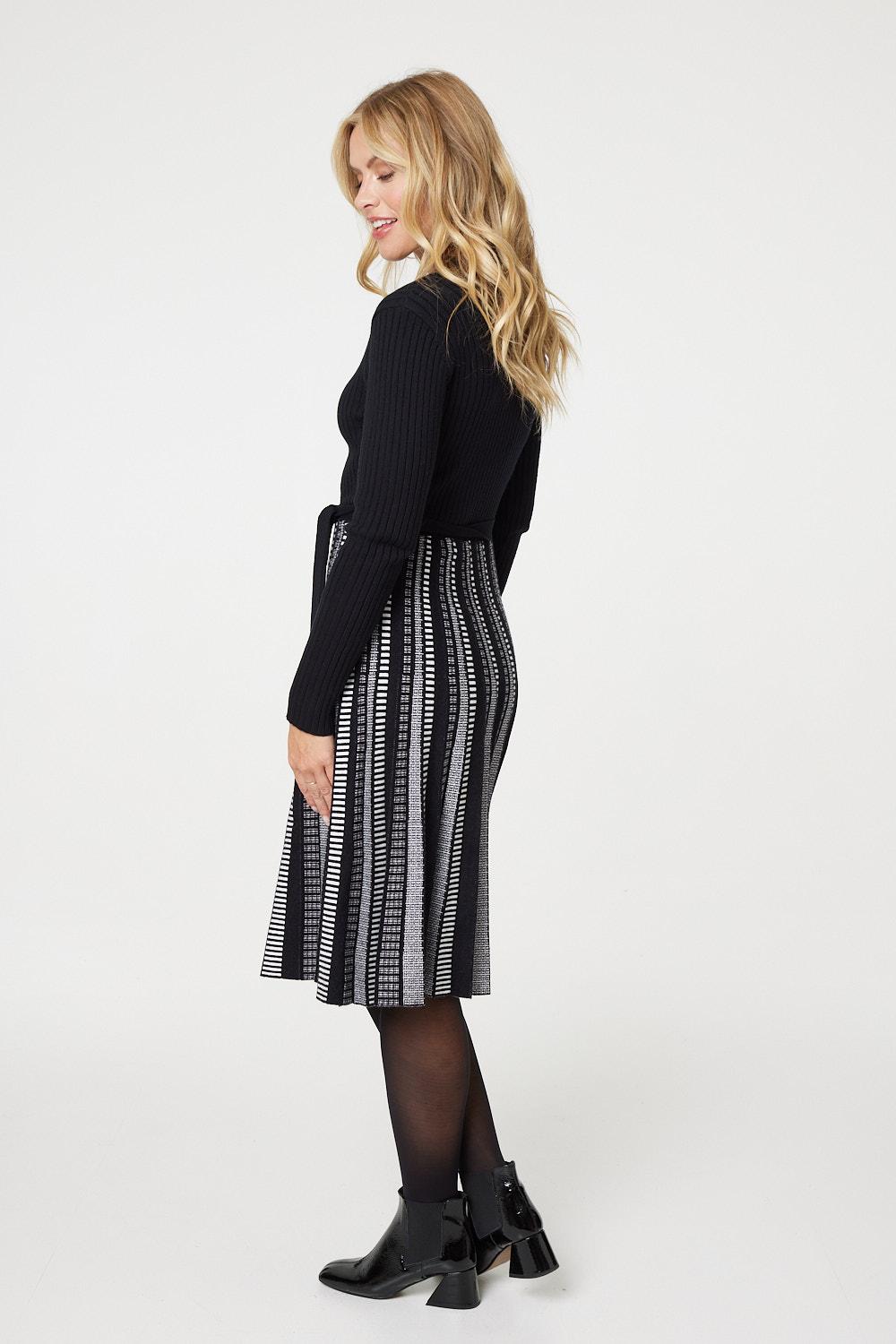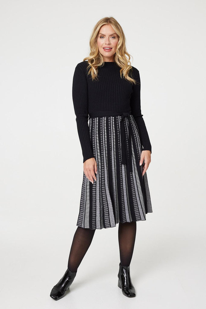 Monochrome Knit Pleat Dress BLACK/WHITE