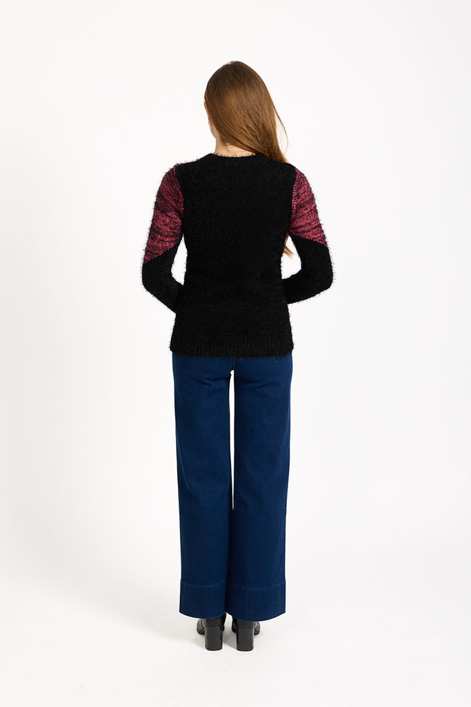 Our Colour Block Fluffy Yarn Jumper is ever so soft and perfect for those extra chilly days. Featuring a classic round neckline and long sleeves finished with fluffy yarns in contrasting autumn-winter hues, it is sure to keep you looking stylish whilst staying warm and cozy.