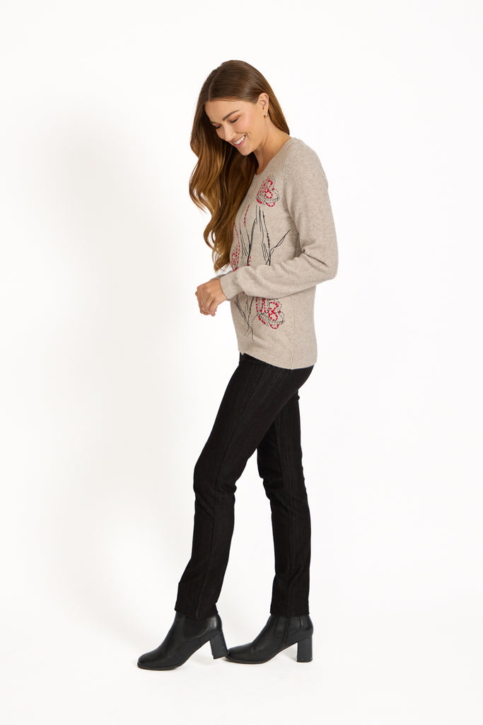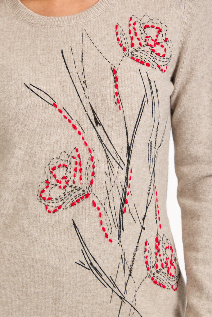 Brighten up your wardrobe with our Floral Outline Stitch Detailed Jumper. Made with a delicate floral outline design with raised stitch detailing bringing a fresh and modern twist to your everyday knitwear. The soft knit fabric ensures comfort while the cool tones make it a perfect piece for the colder months.