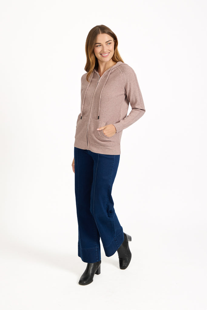 Cable-knit Zip Hooded Cardigan TAUPE