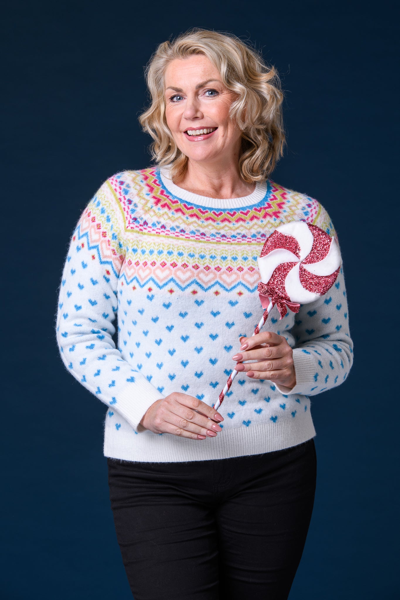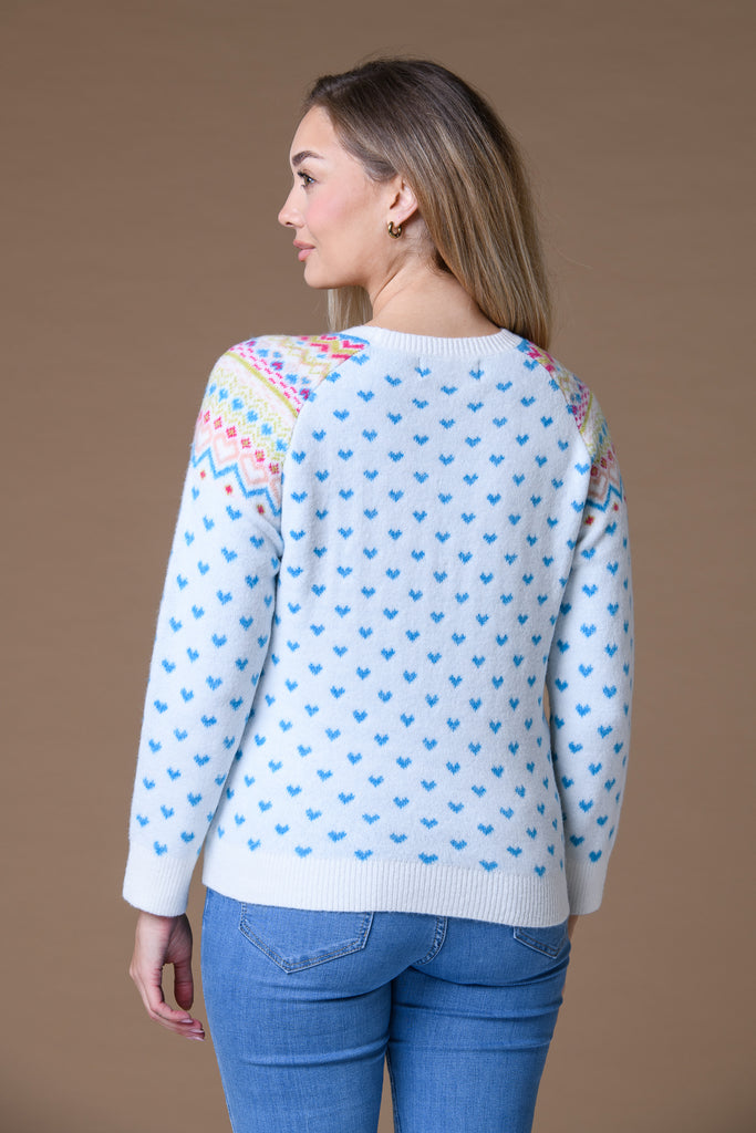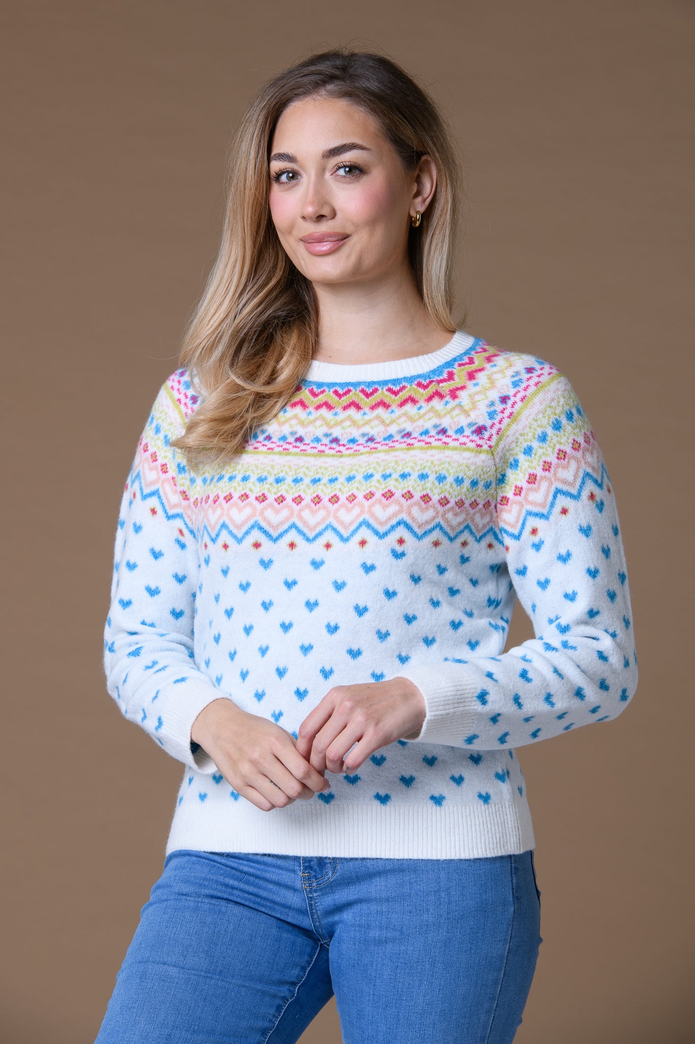 Wrap yourself in warmth and charm with our Hearts Fairisle Sweater, a timeless knit that blends classic craftsmanship with a touch of romance. Featuring a beautifully detailed Fair Isle pattern of interlocking hearts across the yoke, this sweater celebrates cozy comfort and heartfelt style.