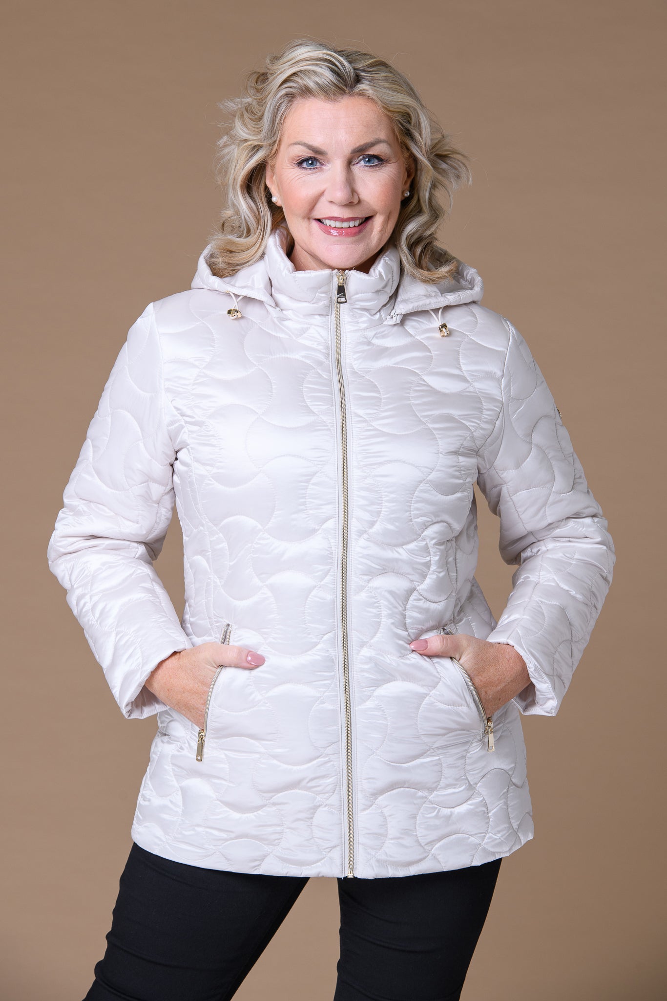 Embrace warmth and style with this cream quilted jacket, designed to keep you cosy through the seasons. The distinctive jigsaw pattern adds visual interest to a timeless neutral shade that pairs effortlessly with any wardrobe. Lightweight yet insulating, this jacket offers the perfect balance of comfort and sophistication. Whether you're heading out for a casual day or layering for extra warmth, this versatile piece delivers both practicality and understated elegance.