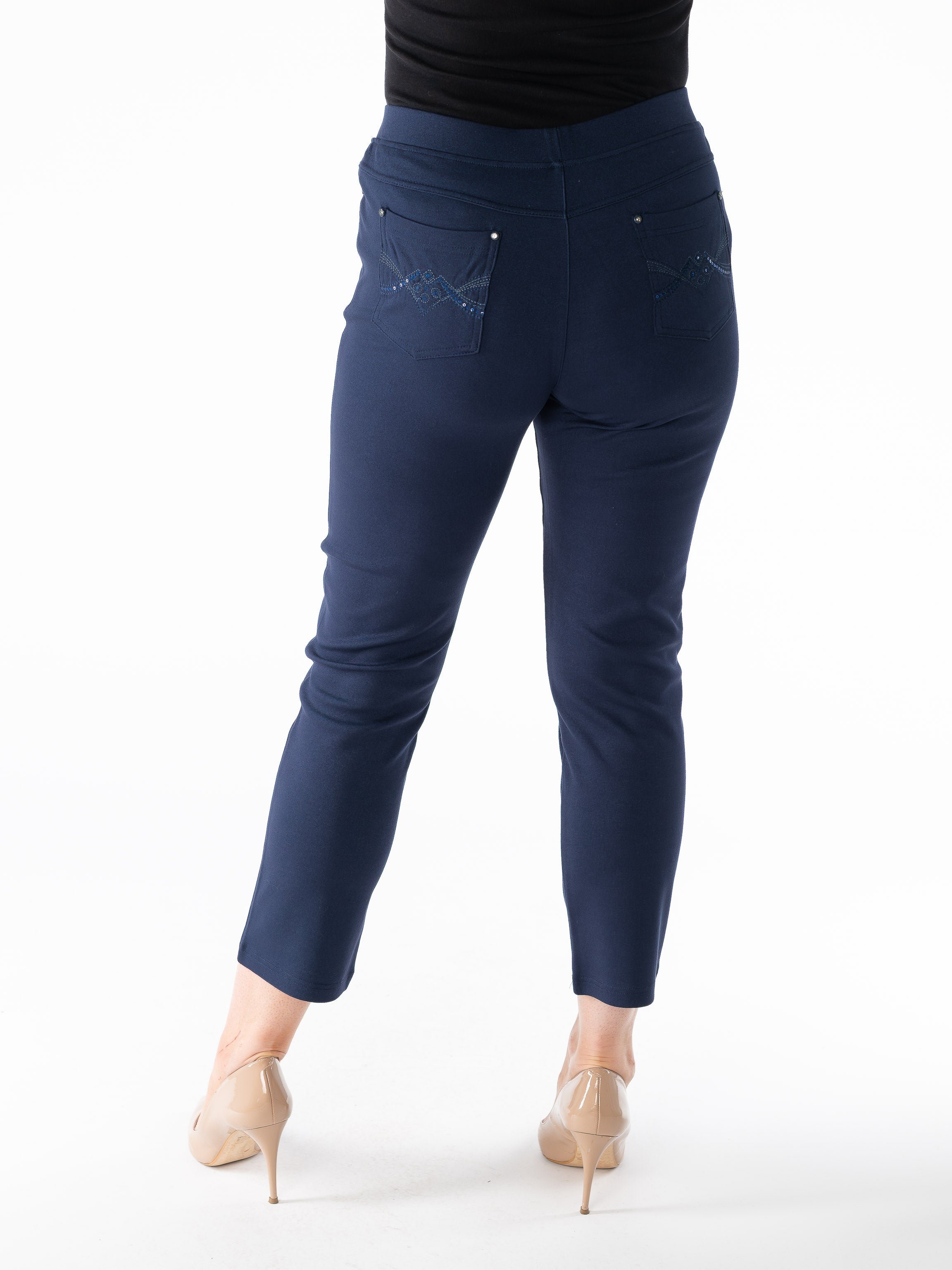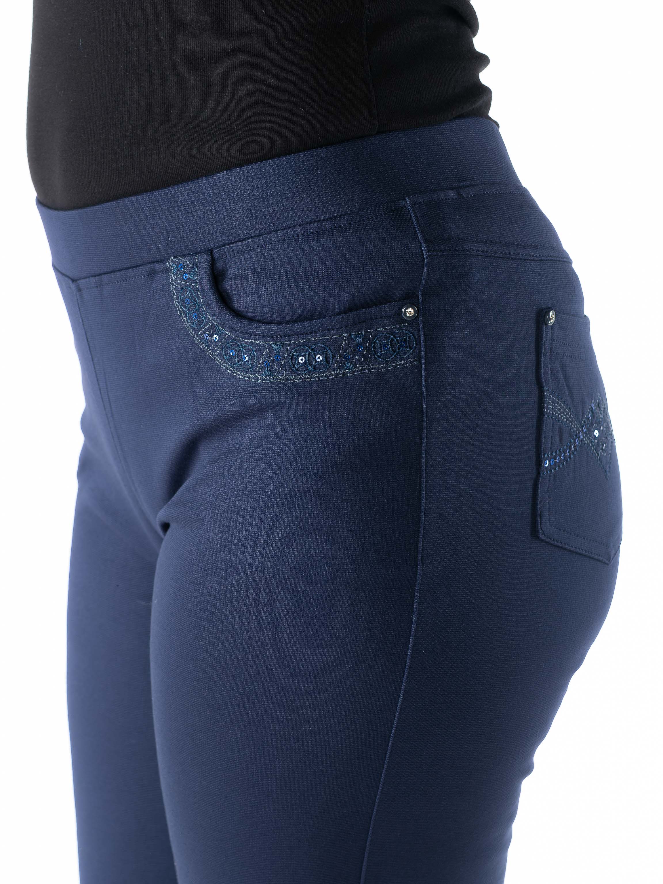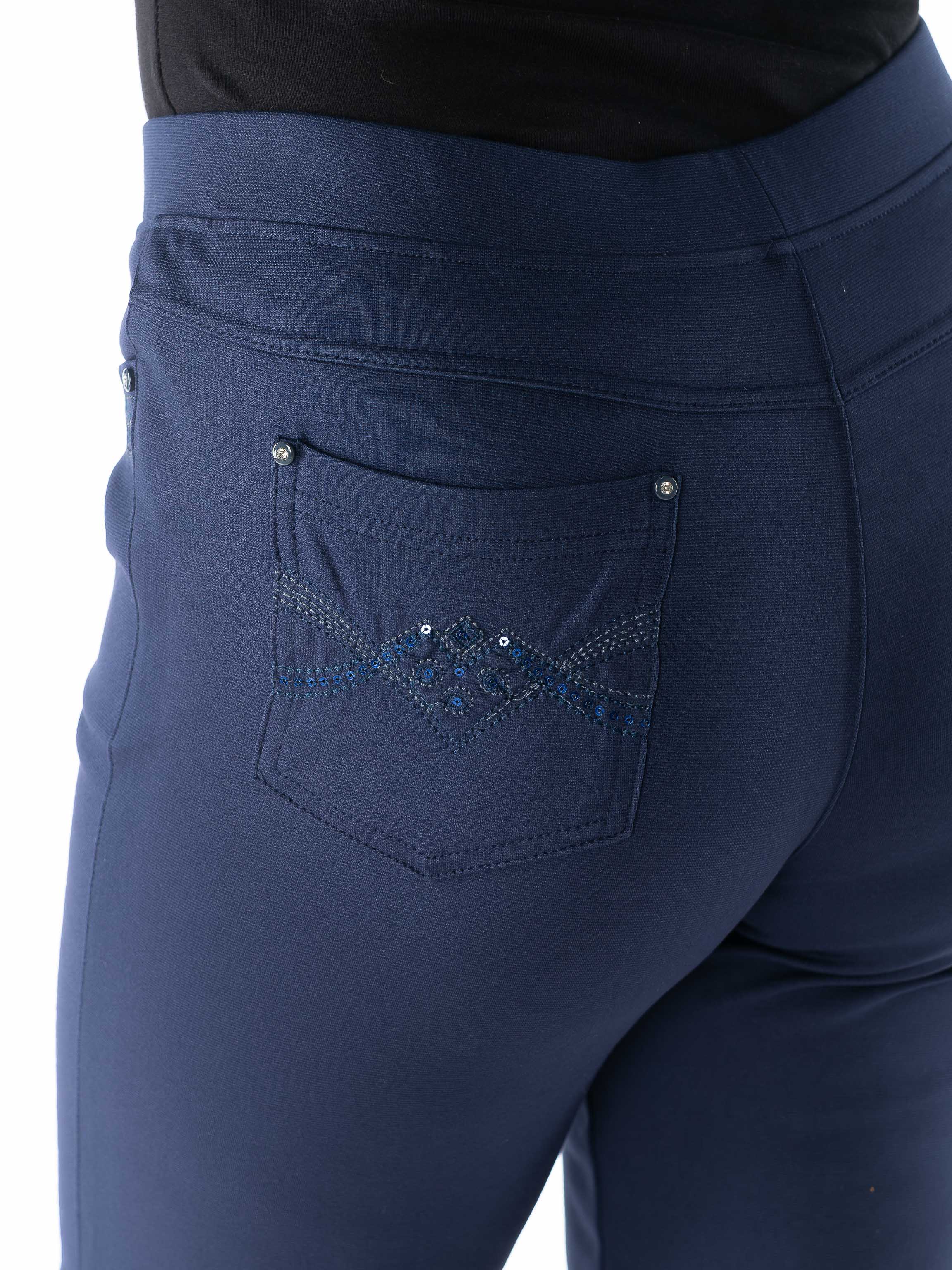T30239 Embroidered Pocket Trouser 27 Leg Elast - Navy