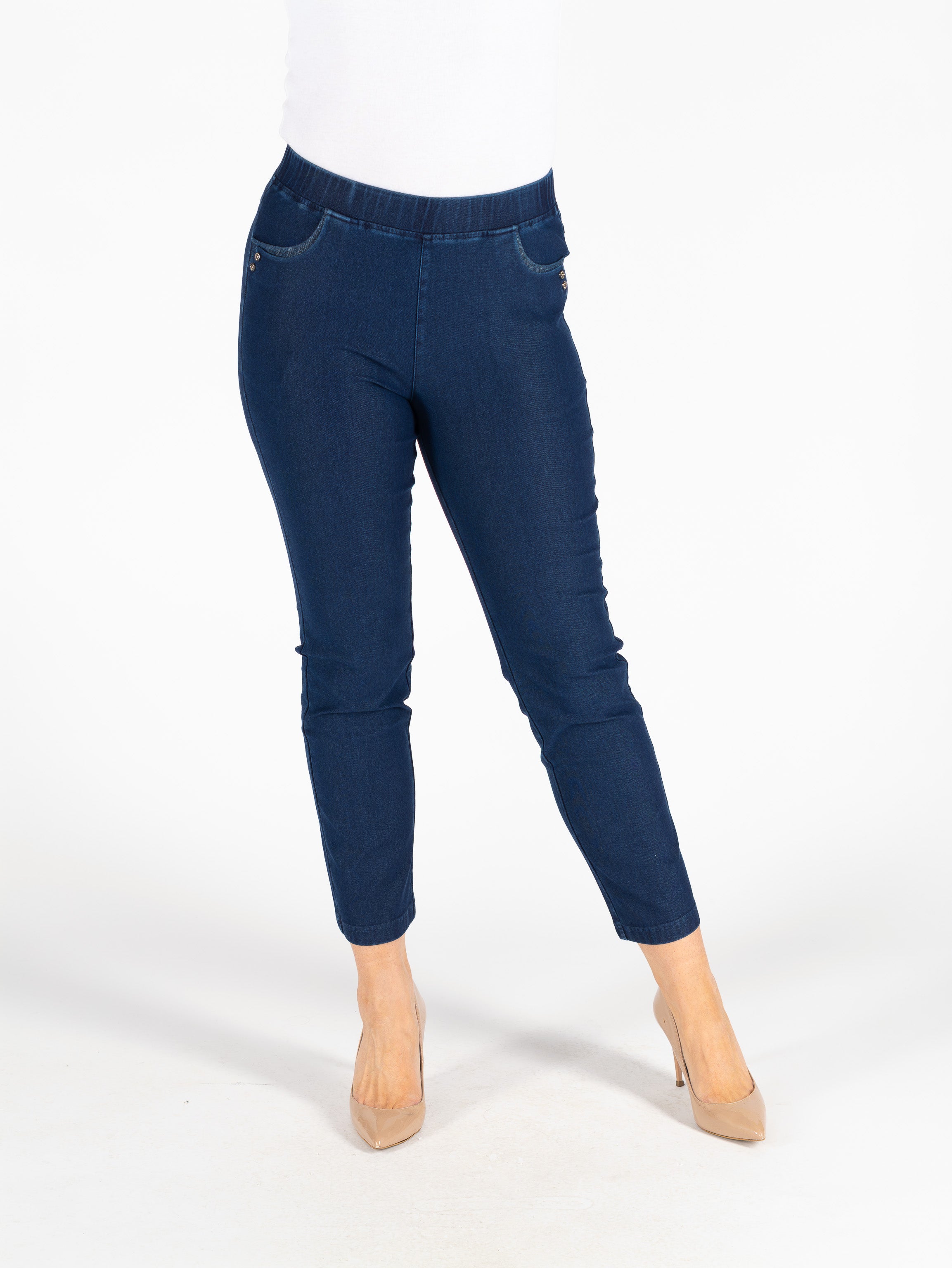 T30512 27 Inch Denim Trouser Metal Trim Pocket Dark Blue