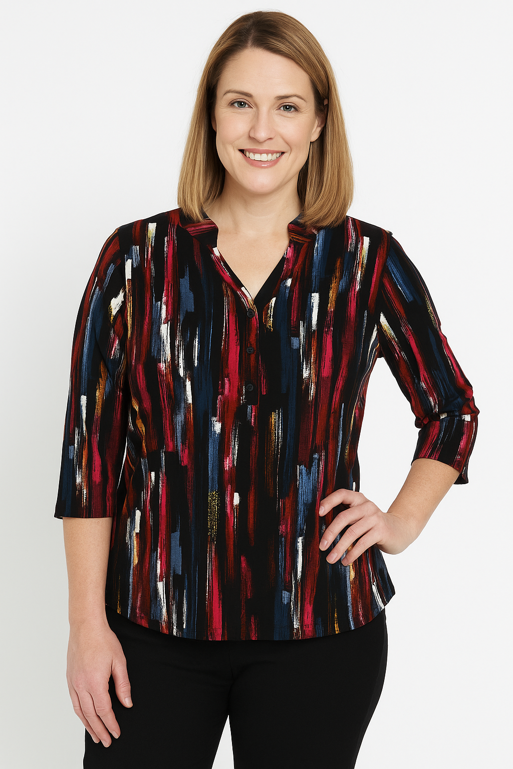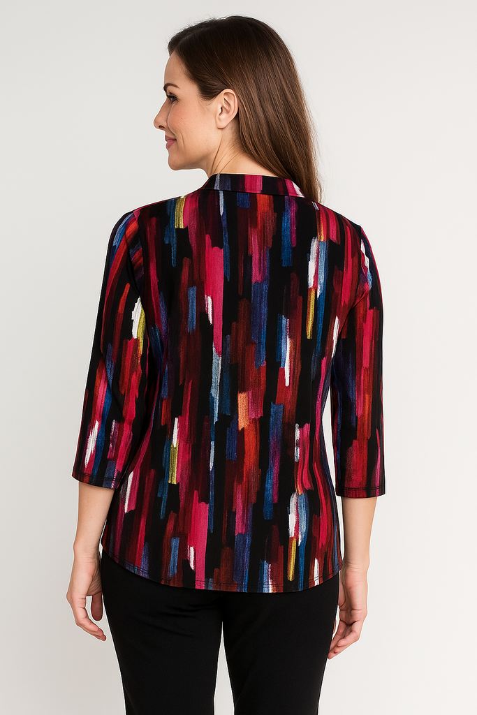 TO30427 CERISE MULTI BRUSHSTROKE PRINT TOP 3/4 S CERISE MULTI