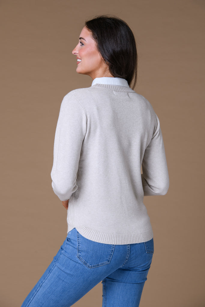 Elevate your everyday style with the Box Cable Insert Sweater — a perfect blend of classic texture and modern design. Crafted from a soft, breathable knit, this sweater features intricate cable-knit detailing across the front and sleeves, adding timeless charm and depth. The relaxed boxy silhouette provides effortless comfort and easy layering, making it ideal for both casual and refined looks.