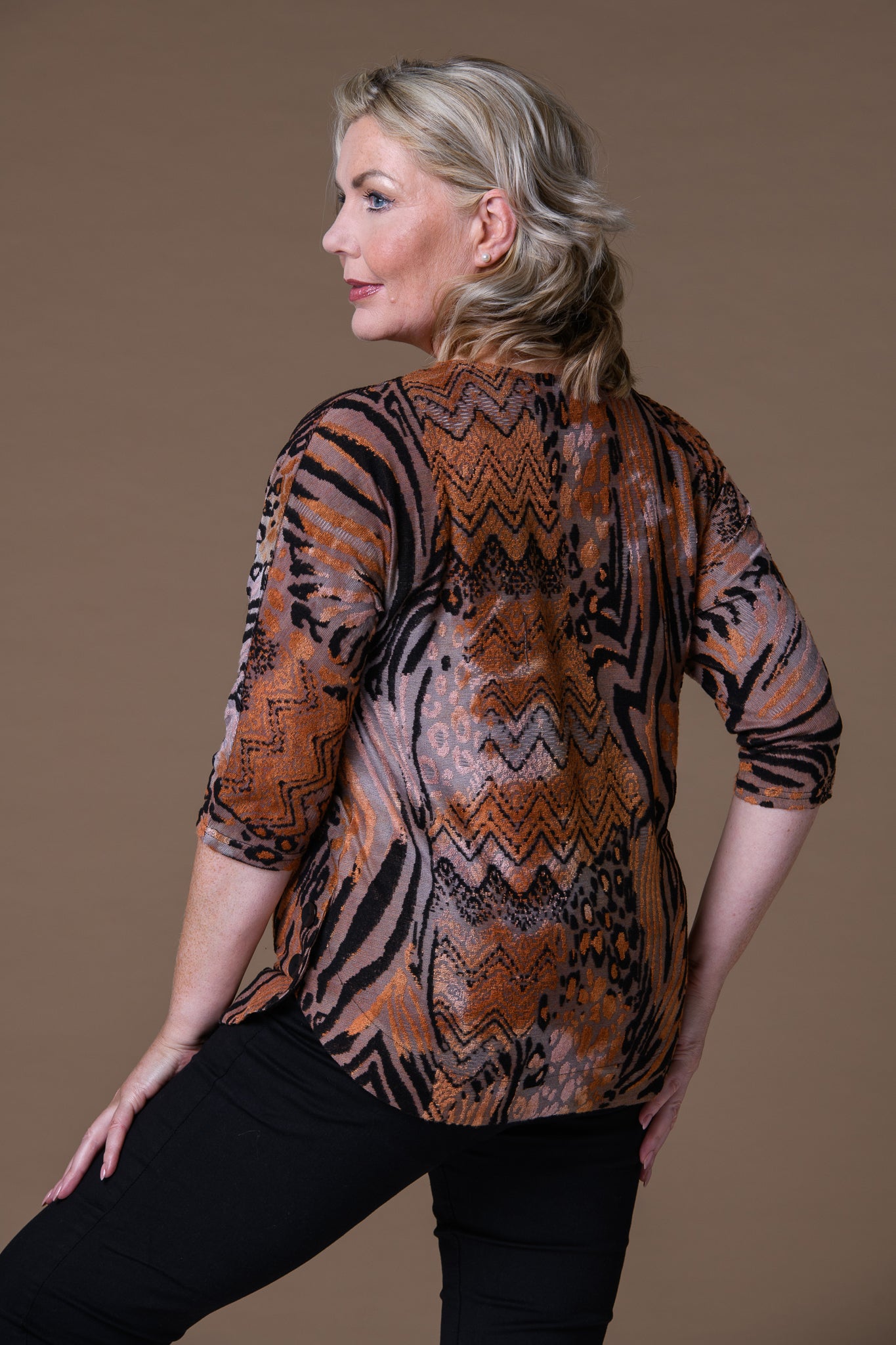 Add a touch of elegance to your look with this curve hem burnout velour top. Crafted from soft, velvety fabric with a delicate burnout pattern, it offers both comfort and sophistication. The curved hemline flatters the silhouette and gives a modern finish, making it perfect for pairing with smart trousers or jeans for effortless day-to-night style.