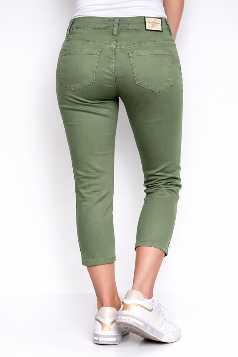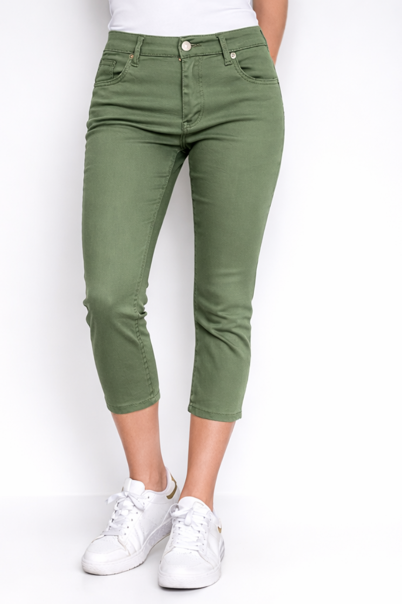 Add a natural, easy-going tone to your wardrobe with these Cut Off Colour Denims in Light Olive. The soft olive shade brings a relaxed, earthy feel that pairs beautifully with both neutral and brighter colours.