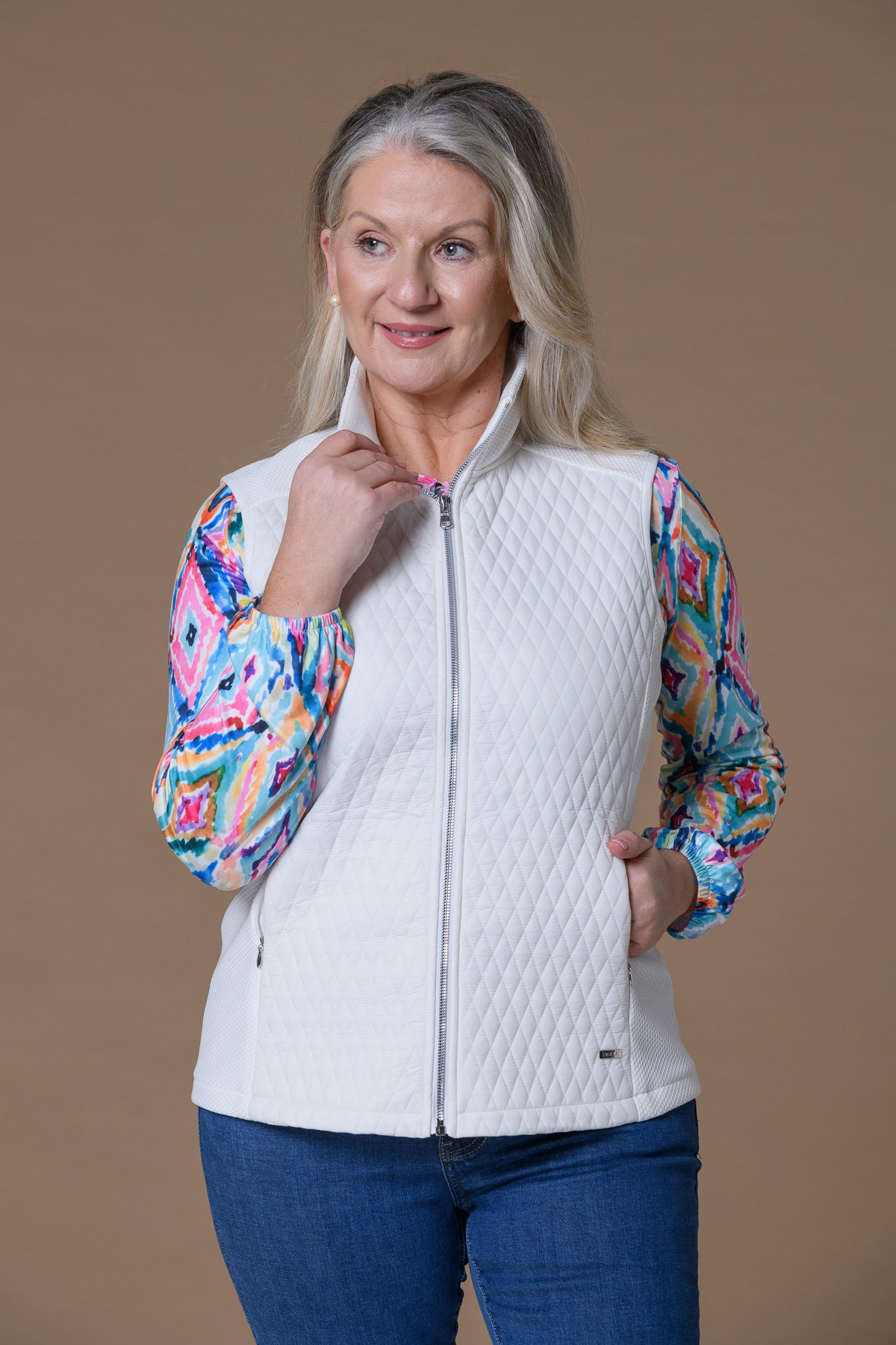 Engineered for layering versatility, this honeycomb sides gilet combines structured warmth with contemporary design. The distinctive honeycomb texture paneling on the sides provides visual interest while maintaining a streamlined silhouette. Crafted in crisp white, it pairs effortlessly with any wardrobe foundation. The gilet's construction offers lightweight insulation without bulk, making it ideal for transitional seasons or as a mid-layer under heavier outerwear. Perfect for those seeking functional style with understated sophistication.