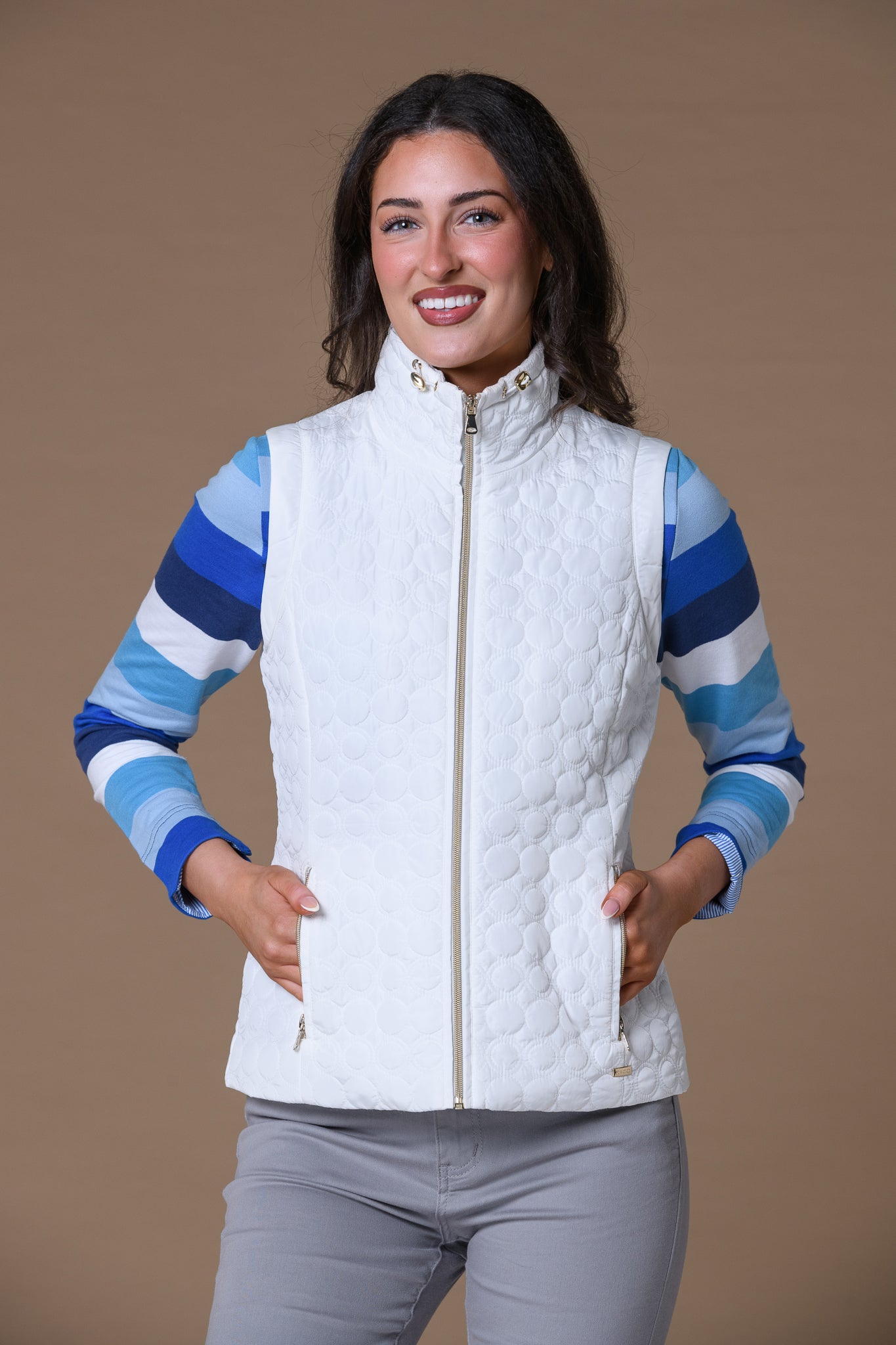 • Neckline: Zip neckline with contrast navy collar