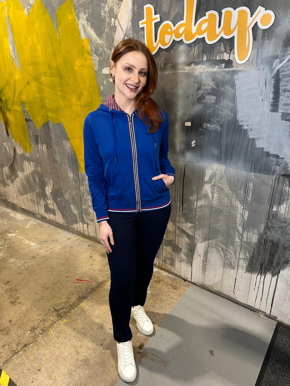Add a sporty yet polished layer to your wardrobe with this Stripe Lining Hoody in Mazarine Blue. The rich blue colour gives it a fresh, confident look, while the striped lining inside the hood adds a stylish contrast detail.