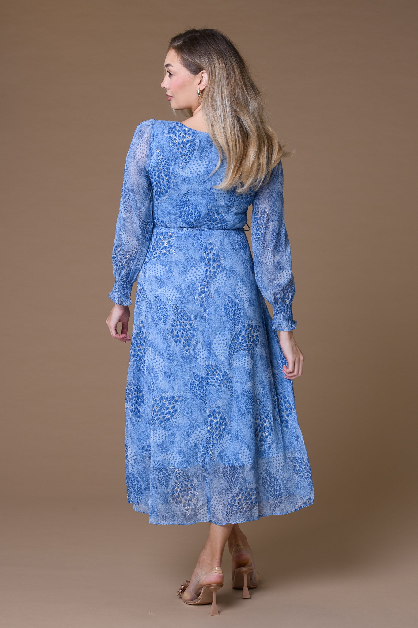 Elevate your evening wardrobe with this stunning Peacock Feather Maxi Dress in a rich blue hue. Crafted with meticulous attention to detail, this floor-length design features an intricate peacock feather pattern that commands attention while maintaining sophisticated elegance. The flowing silhouette drapes beautifully, offering both comfort and a flattering fit for various body types. Perfect for formal occasions, galas, or upscale events, this dress combines timeless style with contemporary flair. The deep blue coloring provides versatility for pairing with accessories, while the distinctive feather motif ensures you'll stand out in any gathering. An investment piece that transcends seasonal trends.