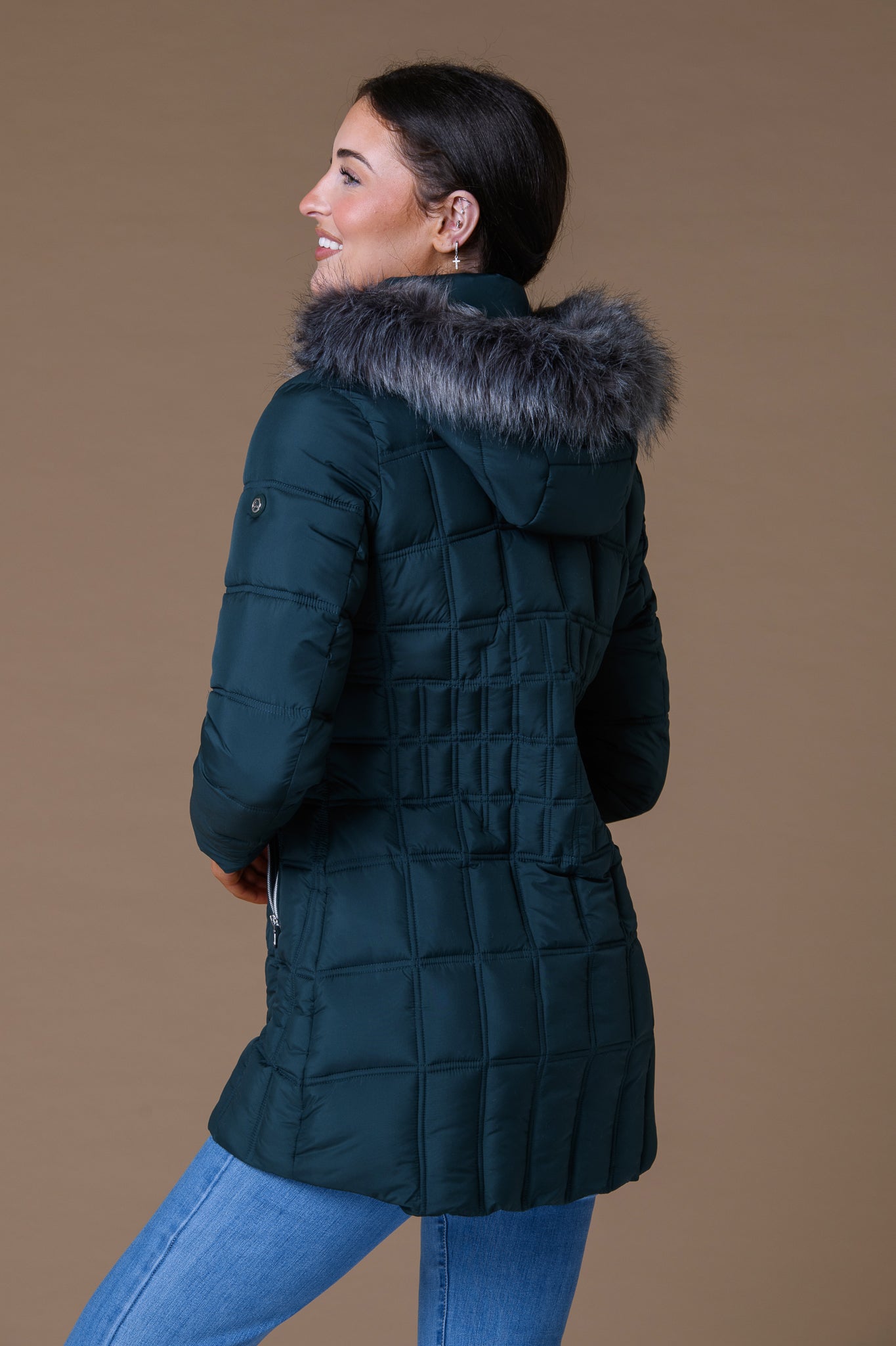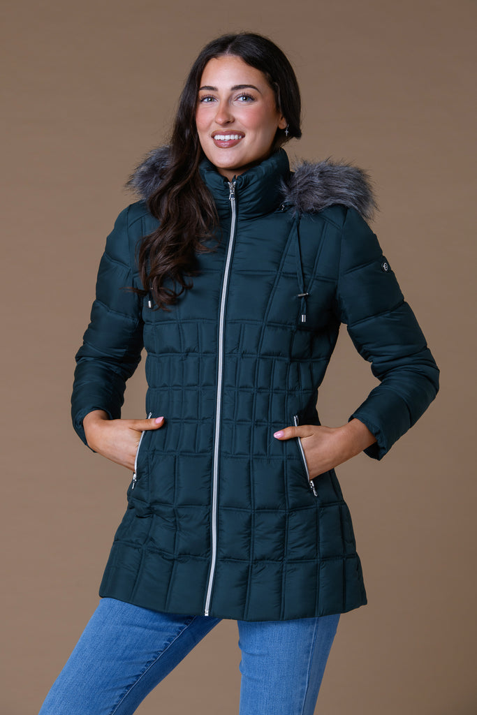 Elevate your outerwear with our Fur Trim Square Quilt Jacket. Featuring a modern square quilting pattern and a luxurious fur-trimmed hood, this jacket combines style and warmth effortlessly. Perfect for chilly days, it’s designed to keep you cozy while looking chic. Pair it with your favourite jeans or boots for a versatile, on-trend look.