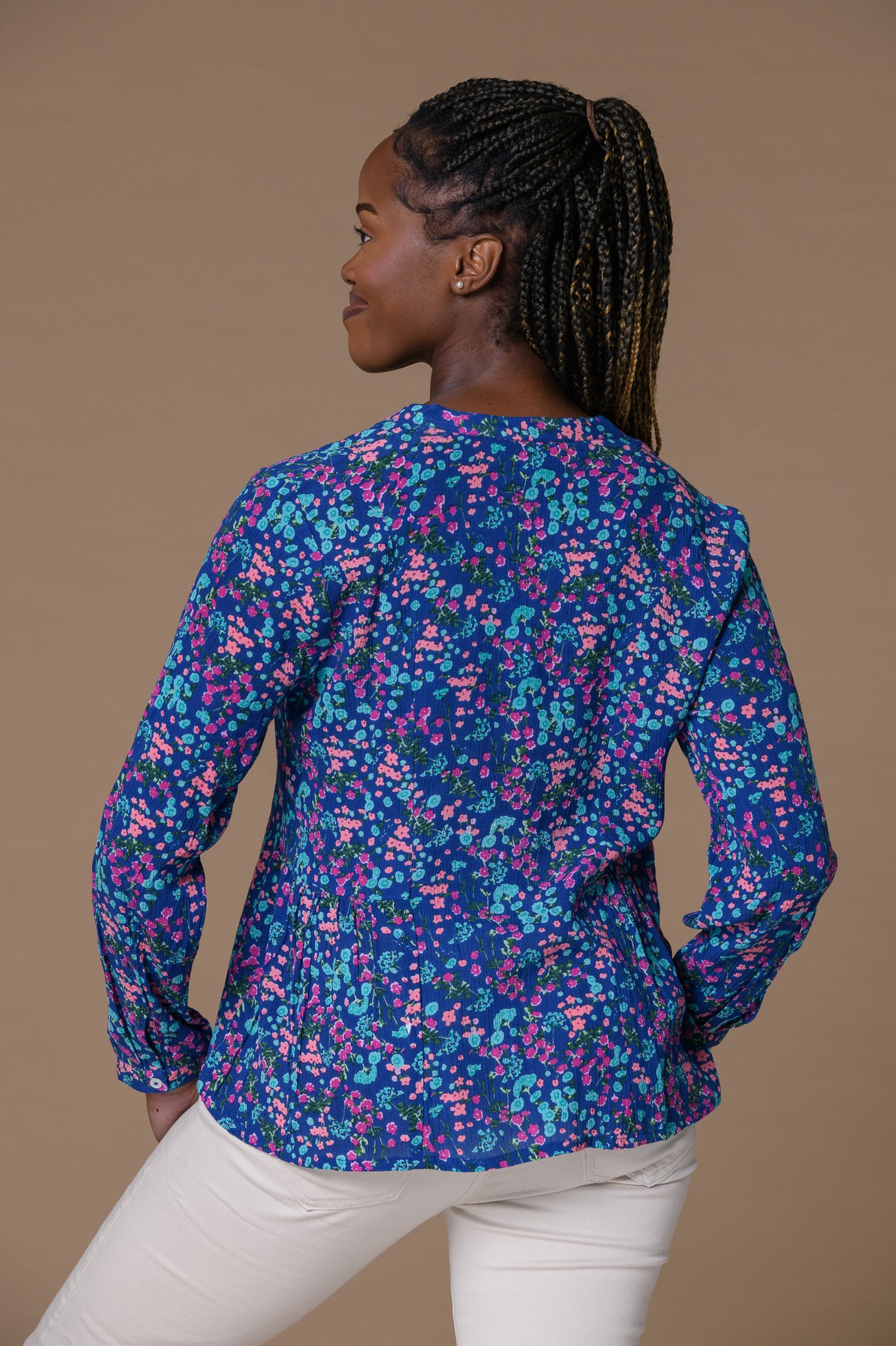 - Long sleeves with gentle drape: Comfortable and flattering