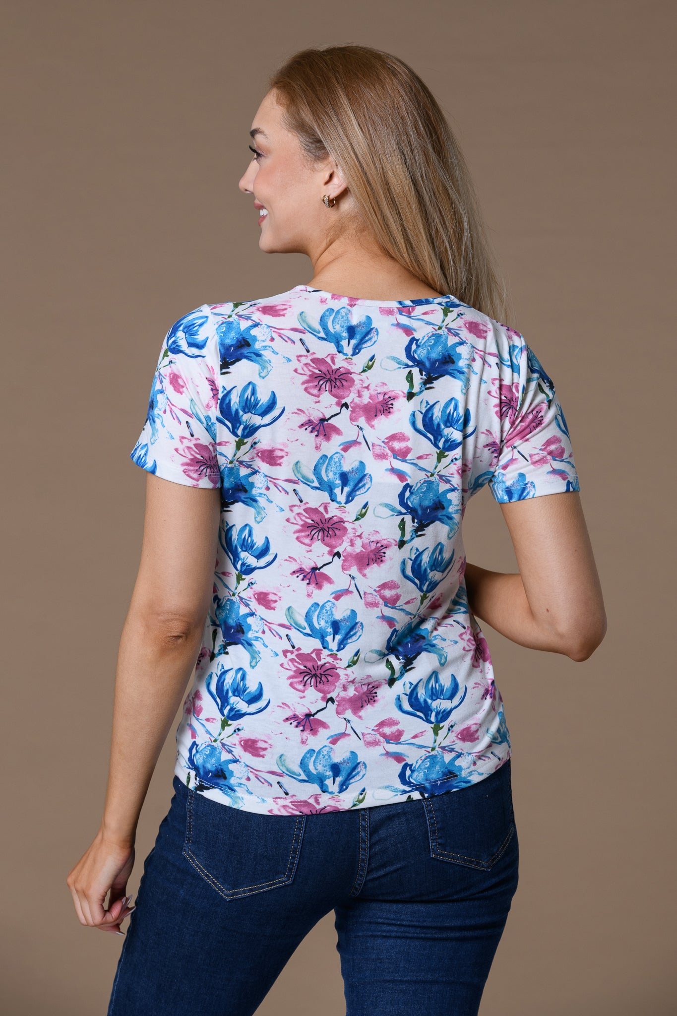 Soft, light and beautifully feminine, the Dreamy Flowery V Neck Top adds a gentle touch of colour to your everyday wardrobe. The delicate mix of pink and blue florals on a soft base creates an easy, uplifting look that feels fresh and wearable.