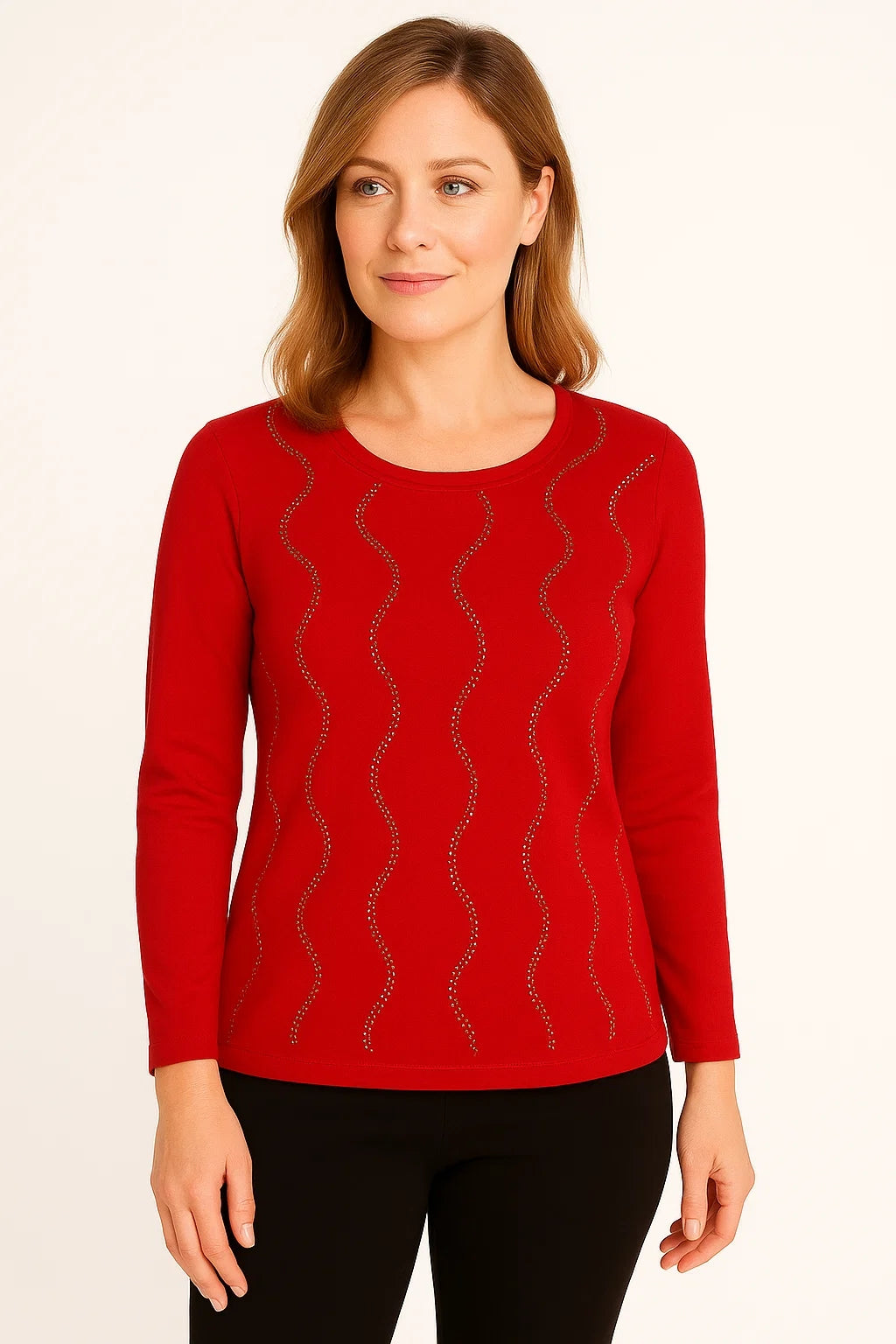 JU30320 Wavy Sparkle Jumper Hotfix 3/4 Sleeve Red